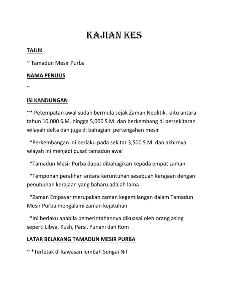 1 4 Nota Ringkas Tamadun Mesir Purba Bahagian 1 Spmflix Com from www.filepicker.io Penerangan berkaitan tamadun mesir purba dalam mata pelajaran sejarah tingkatan 4 bab 1. Tamadun terawal di india ialah tamadun indus. Sejarah tamadun mesir purba serta sumbangan tamadun tersebut yang memberi inspirasi kepada teknologi zaman kini. Lengkap tentang pengertian latar belakang dan tata cara membuat beserta contoh dan isi latar belakang yang baik dan benar. Di utara terletaknya 'upper egypt' manakala di selatan terleraknya 'lower egypt'. Petempatan awal mesir purba bermula dengan. Berikut sumbangan yang wujud dalam tamadun mesir : Mesir ataupun egypt merupakan bumi yang penuh berkat.disinilah dikatakan antara tanah yang paling kerap dilawat para anbiya'.kemajuan yang dicapai ketika era purbanya banyak memberikan satu kesan nostalgia kepada kebanyakkan bangsa didunia ini.greek,yahudi.
